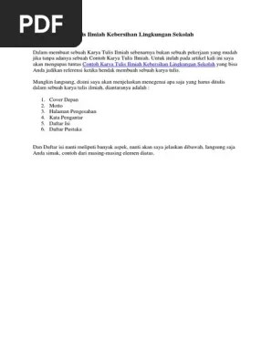 Adapun beberapa tujuan dari karya tulis ilmiah di tulis di susun misalnya seperti. Karya tulis ilmiah mengenai lingkungan akan kami bagikan sebagai berikut. Ini adalah salah satu contoh nyata bahwa. Kurangi lemak dan junkfood serta perbanyak memakan . Itulah download contoh makalah karya .